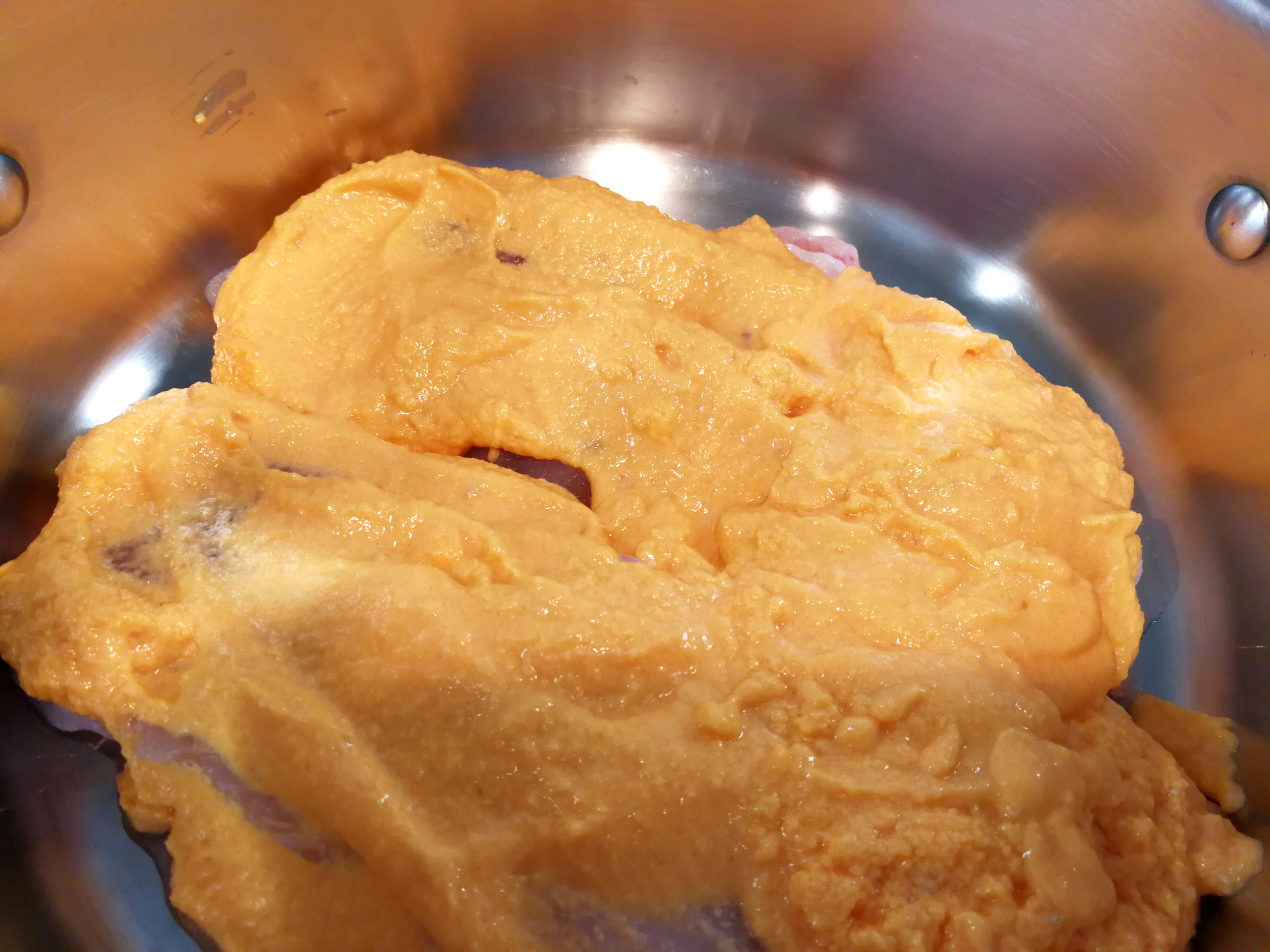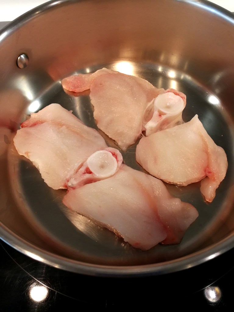 Paso 1. Se ponen las rodajas (trozos) de rape limpios y con un poco de sal en una cazuela.