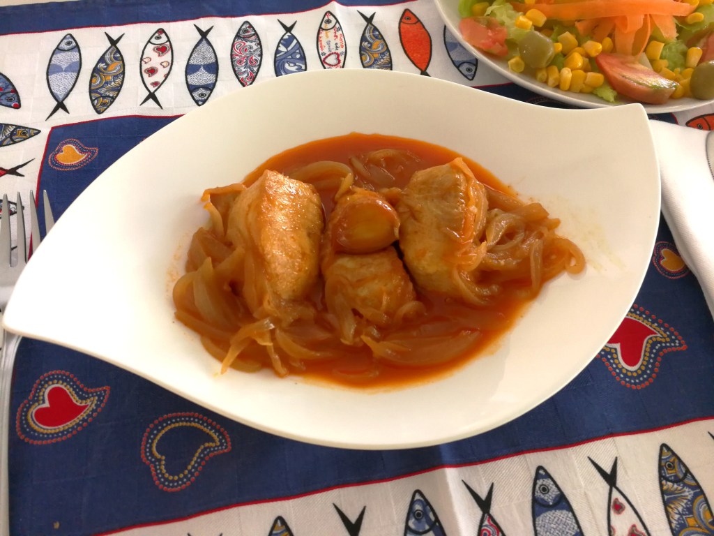 - Podemos pedir al pescadero que nos prepare las dos rodajas de bonito de unos dos dedos de ancho cortadas en 4 tacos limpios de piel y de espinas.