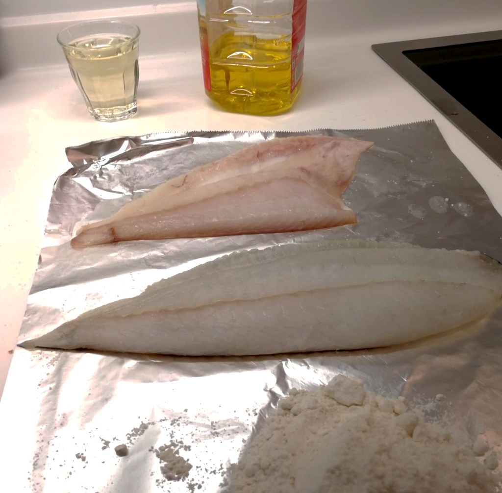 Paso 1. Se cogen los lomos del rodaballo, se sala al gusto y a continuación se enharina.