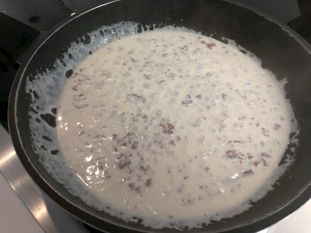 A continuación se añade la nata líquida dejándola reducir un poco.