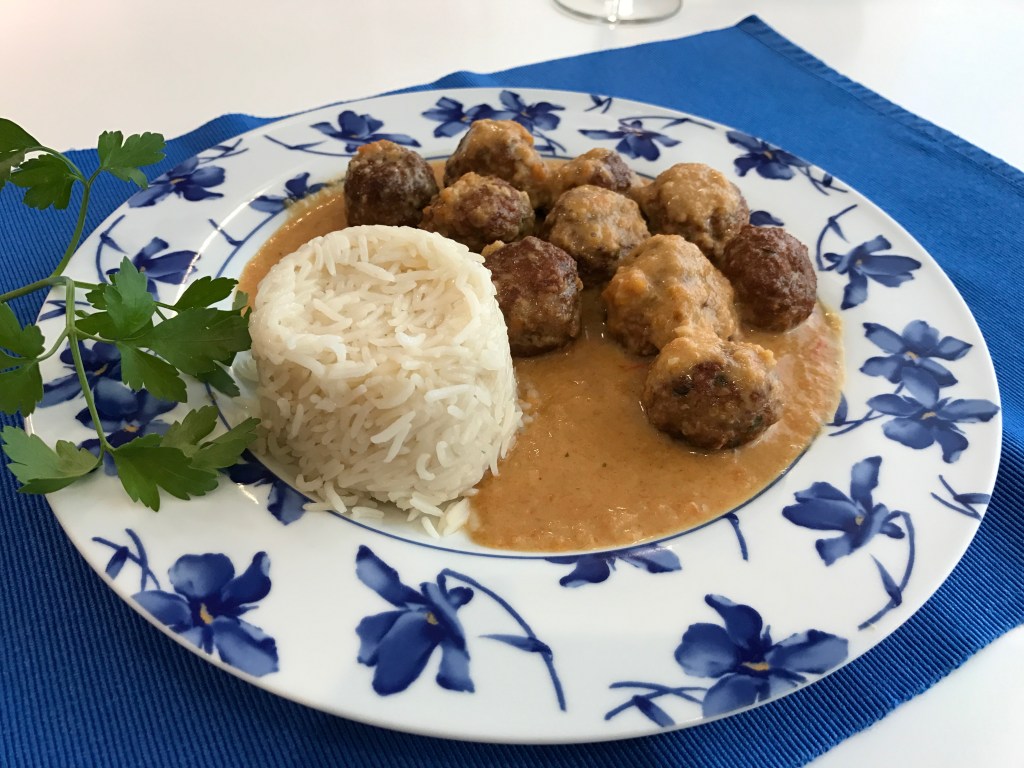 Una opción de finalización, si se desea, se reservan en un recipiente las albóndigas, y con la varilla eléctrica se trituran las verduras para que se integren en la salsa. Hecha esta operación se reintegran las albóndigas dejando que queden empapadas con la salsa aumentando se jugosidad.