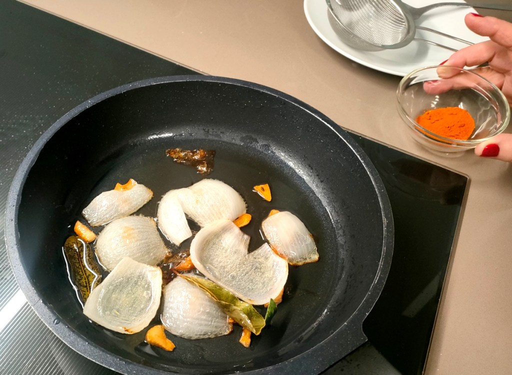 Para sacarle el máximo sabor deberemos disponer de un «fumet» de pescado cuyos ingredientes principales pueden ser espina de merluza y cabeza de rape.