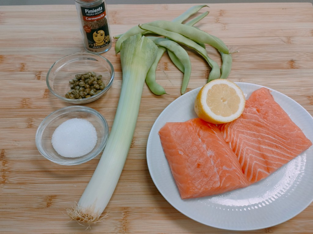 1000 gr. de salmón fresco, cortado el lomos, limpio de piel y espinas.