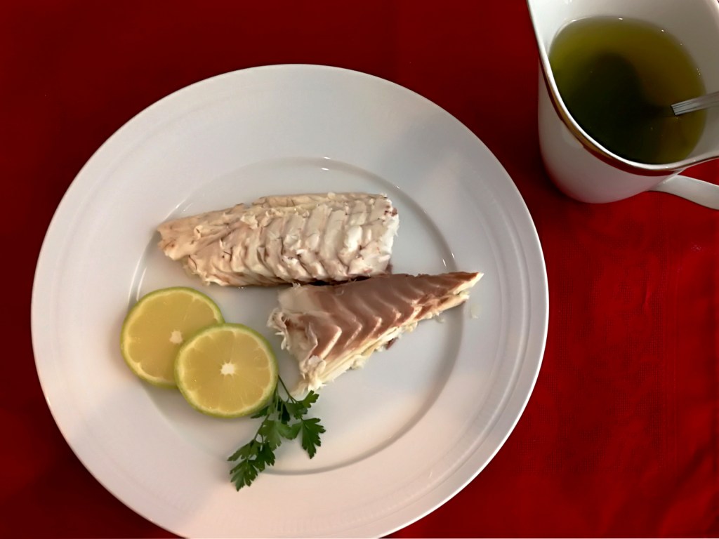 Seguidamente pasamos a emplatar, acompañamos con una ramita de perejil y dos rodajas de limón, o cualquier otra producto con que lo queramos acompañar.